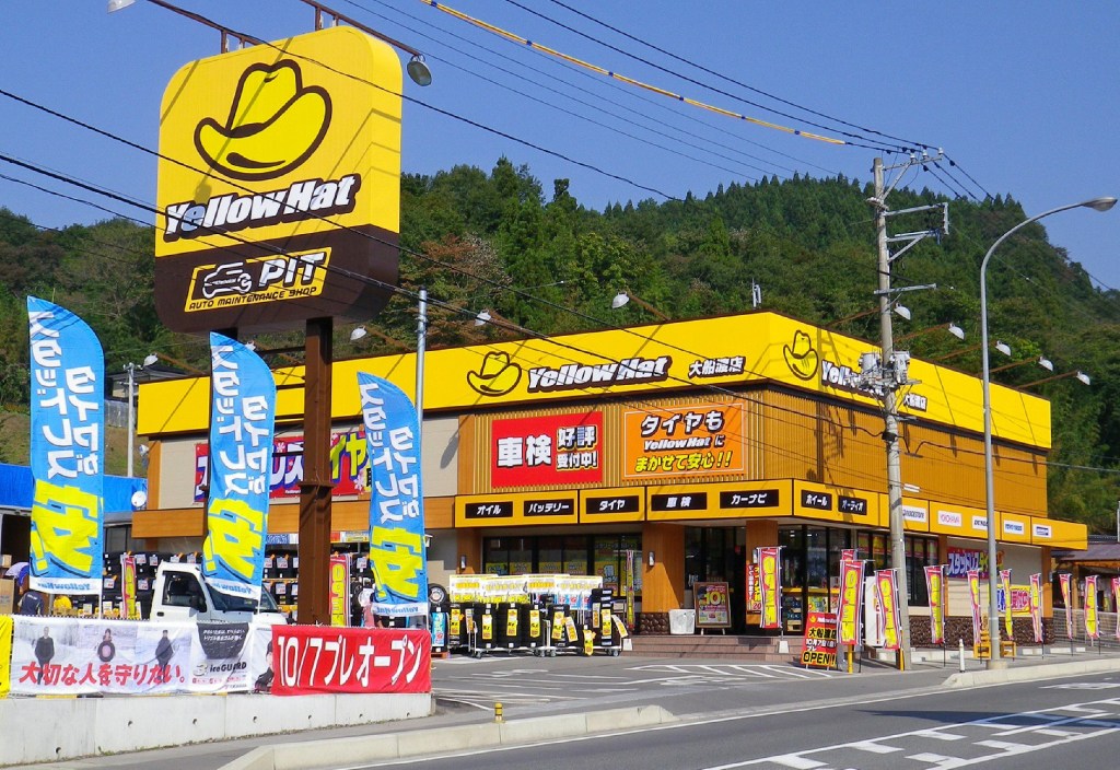 Yellow Hat cũng là chuỗi cửa hàng bán lẻ các sản phẩm liên quan đến ô tô trên khắp Nhật Bản. Yellow Hat bán lốp xe, bánh xe, hệ thống nghe nhìn âm thanh trên xe hơi, hóa chất rửa xe và các phụ kiện nội ngoại thất xe hơi. Bạn có thể dễ dàng nhận biết cửa hàng bằng màu vàng nổi bật và logo đặc trưng.