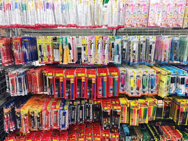 Hãy nhớ ngó qua góc văn phòng phẩm tại các cửa hàng 100 yên bởi ở đó có đủ tất cả các loại đồ dùng học tập và văn phòng phẩm thiết yếu, bao gồm bút, sổ ghi chép, kéo, bút chì màu, sơn, máy tính và nhiều thứ khác. Chuỗi cửa hàng Seria đặc biệt được biết đến với đa dạng những thiết kế đồ dùng văn phòng phẩm sặc sỡ, vui nhộn và đầy sáng tạo.