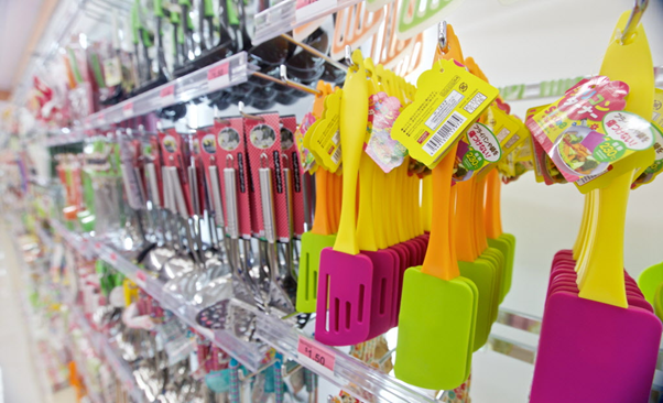 Bạn sẽ bắt gặp “tất tần tật” những món đồ dùng cần thiết khi vào gian hàng đồ dùng làm bếp ở cửa hàng 100 yên như dao làm bếp, kéo cắt mì, thớt, đồ gọt vỏ rau củ,… Chất liệu của chúng rất đa dạng từ nhựa, silicon, gỗ đến thép không gỉ và thiết kế cũng rất sáng tạo, mang đến sự tiện lợi cho người nội trợ. Thậm chí, ở cửa hàng 100 yên còn bán rất nhiều những vật dụng nhà bếp sáng tạo hoàn toàn đáng để thử, chẳng hạn như giá đựng chảo rán hoặc giá để cốc mà bạn gắn vào đáy kệ. Sử dụng các ngăn chia không gian, như ngăn đựng rau và ngăn xếp bát, là những ý tưởng thiên tài và không bao giờ thất bại trong việc biến căn bếp của bạn trở nên đẹp đẽ và gọn gàng hơn. Chính vì vậy khi bạn đang tìm kiếm một món dụng cụ nhà bếp thì cửa hàng 100 yên là một điểm đến thích hợp đấy!