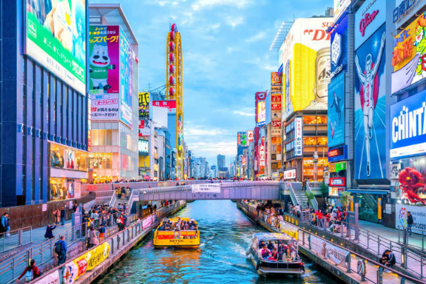 Nếu bạn từng tới Osaka mà chưa ghé Dotonbori thì quả là một thiếu sót rất lớn.Dotonbori là một khu phố thương mại đặc trưng của Minami, Osaka, nơi luôn đông đúc, tấp nập người qua lại. Điểm nổi bật ở đây là phong cảnh lấp lánh ánh đèn neon vào ban đêm của các biển hiệu khổng lồ. Bạn có thể thưởng thức nhiều món ăn hấp dẫn, từ các nhà hàng đơn giản như takoyaki nổi tiếng của Osaka, sushi băng chuyền, ramen đến sukiyaki và các món ăn phương Tây.