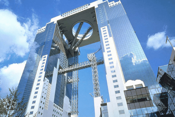 Tòa nhà Umeda Sky là niềm tự hào của người dân Nhật Bản khi lọt top 20 công trình kiến trúc hàng đầu thế giới. Toà nhà có cấu trúc đặc trưng giống như một chiếc nhẫn kim cương lơ lửng trên bầu trời, là đài quan sát trên tầng thượng có thể quay 360 độ kết nối tòa tháp phía đông và phía tây của tòa nhà chọc trời Umeda Sky Building. Từ độ cao 173m so với mặt đất, bạn có thể nhìn thấy đường phố của Osaka và cả đảo Awaji. Ngoài ra, ở tầng hầm tòa tháp còn có nhà hàng Takimikoji mô phỏng lại đường phố của Nhật Bản trong thời đại Showa với các món ăn ngon của Osaka như okonomiyaki và kushikatsu,…