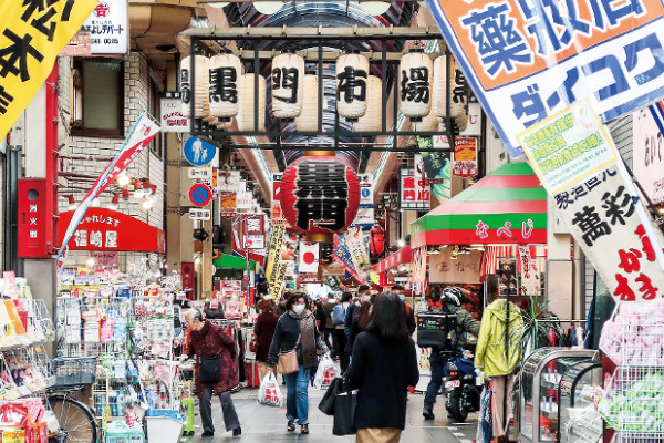 Kuromon Ichiba cách Dotonbori khoảng 5 phút đi bộ về phía đông nam. Ở đây có nhiều cửa hàng ăn uống lâu đời mà bạn không thể bỏ qua khi đến với Osaka. Bạn có thể mua sushi cá tươi, sushi nigiri , hải sản nướng …để có thể vừa đi bộ vừa nhâm nhi. Ngoài ra còn có một không gian ăn uống nơi bạn có thể thưởng thức các món ăn ngon của Osaka.