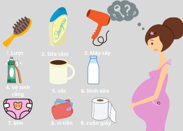 Đầu tiên mình sẽ đưa ra danh sách những vật dụng mà bệnh viện có sẵn ( tùy trường hợp nữa nên bạn hãy hỏi thật kĩ, để đỡ phải mang nhiều nha)