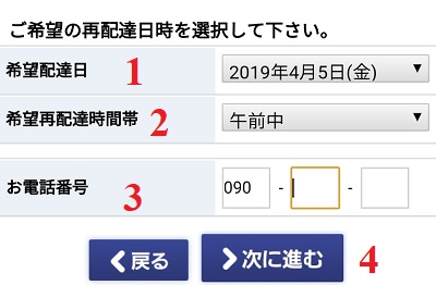- Bước 3 : Tiếp theo bạn sẽ chọn ngày, giờ mà bạn hoặc bạn bè của bạn có ở nhà để nhận hàng hóa khi nhân viên giao hàng tới. Đặc biệt, hãy chắc chắn thời gian hẹn giờ của bạn là chính xác nhé. Sau đó bạn click chọn 次へ để tiếp tục.