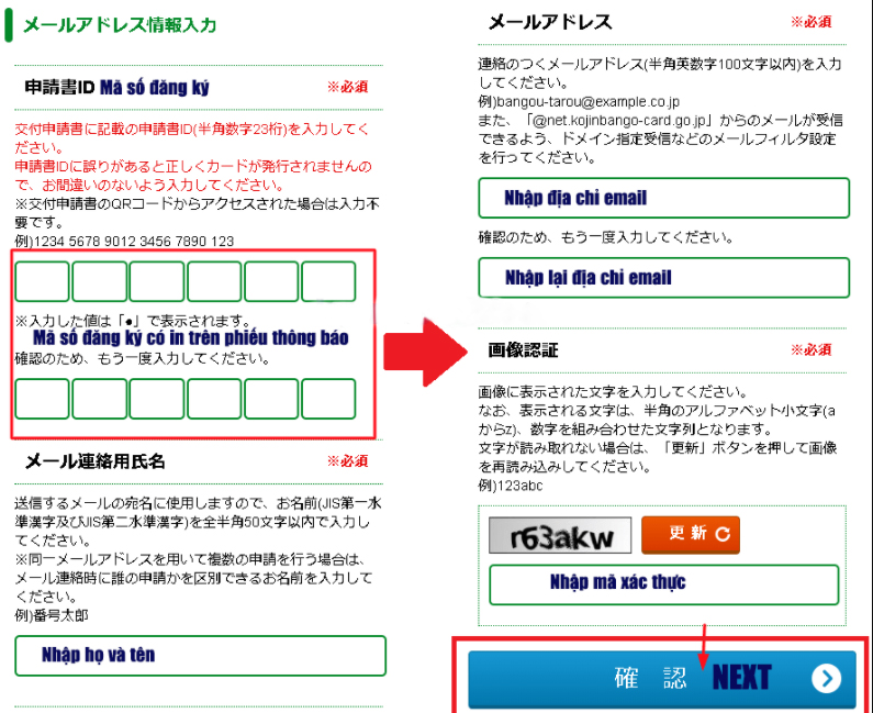 Nhập mã vào ô 画像認証rồi click vào 確認 để chuyển tiếp