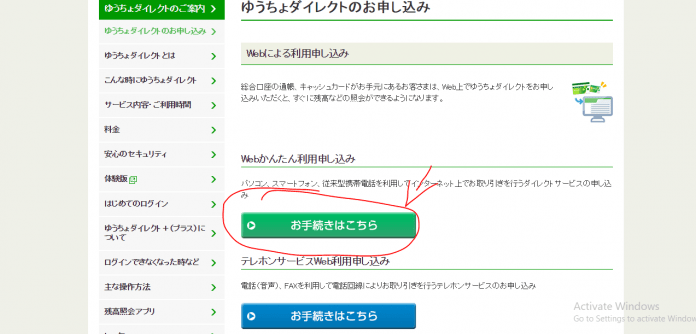 2. Tiếp theo các bạn sẽ chọn ゆうちょダイレトのお申し込み để giao diện chuyển tiếp sang phần đăng ký.