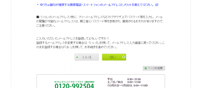 5. Tiếp đó bạn tới màn hình xác nhận và nhận chọn はい.