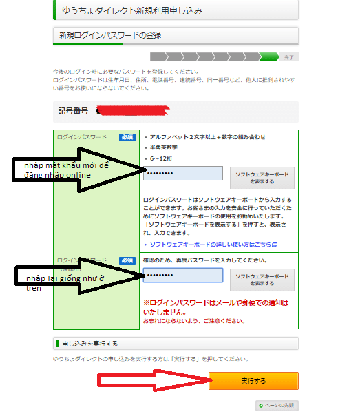Ở giao diện kế tiếp bạn sẽ điền đầy đủ các thông tin để khớp chính xác với thẻ ngân hàng Yucho và thẻ ngoại kiều 在留カード. Trong đó: